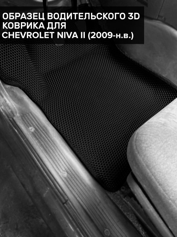 Автомобильные 3д коврики для Chevrolet Niva II (2009-н.в.) в салон авто и багажник сделаны из инновационного полимерного материала EVA, изысканная структура в виде ячеек не дает воде, пыли и снегу разлетаться по салону машины и багажнику. 3д коврики зафиксированы на полу определенными клипсами, соответствующими Chevrolet Niva II (2009-н.в.), и не двигаются в процессе езды.