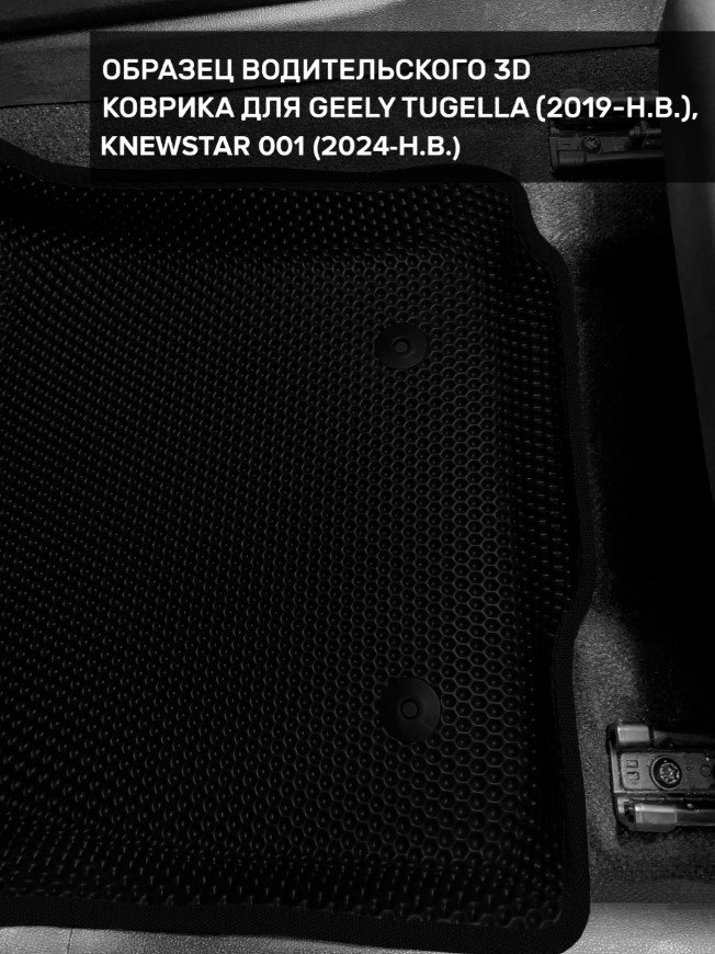 Автомобильные 3д коврики для Knewstar 001 (2024-н.в.) в салон авто и багажник сделаны из инновационного полимерного материала EVA, изысканная структура в виде ячеек не дает воде, пыли и снегу разлетаться по салону машины и багажнику. 3д коврики зафиксированы на полу определенными клипсами, соответствующими Knewstar 001 (2024-н.в.), и не двигаются в процессе езды.