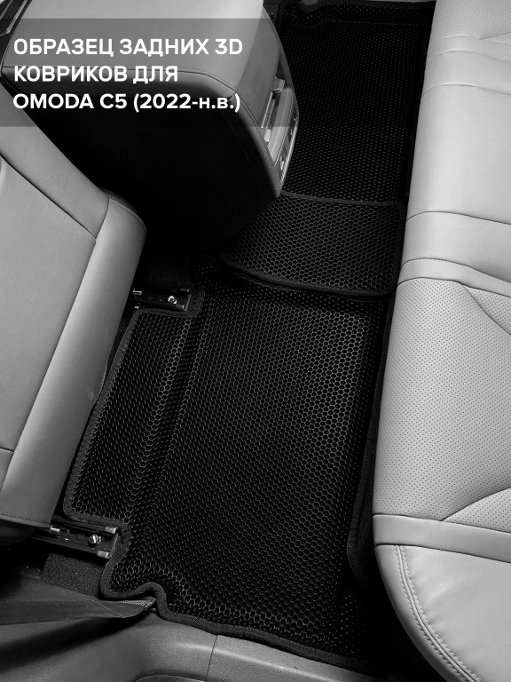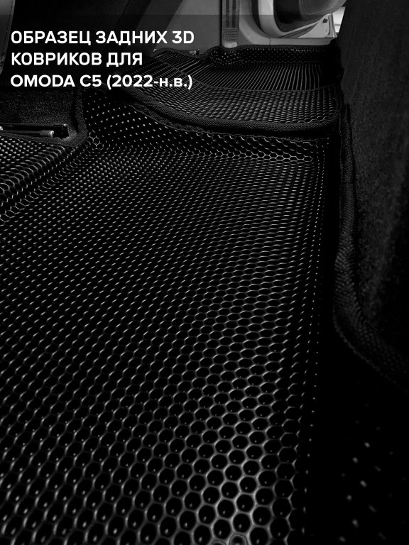Автомобильные 3д коврики для Omoda C5 (2022-н.в.) в салон авто и багажник сделаны из инновационного полимерного материала EVA, изысканная структура в виде ячеек не дает воде, пыли и снегу разлетаться по салону машины и багажнику. 3д коврики зафиксированы на полу определенными клипсами, соответствующими Omoda C5 (2022-н.в.), и не двигаются в процессе езды.