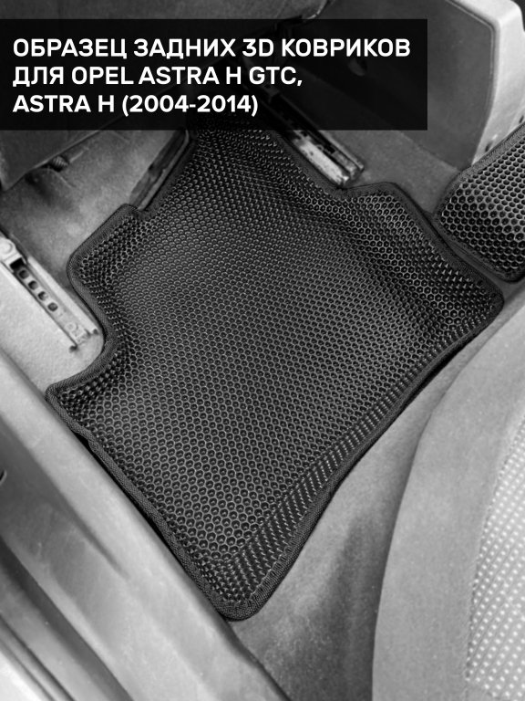 Автомобильные 3д коврики для Opel Astra H хетчбек, универсал (2004-2014) в салон авто и багажник сделаны из инновационного полимерного материала EVA, изысканная структура в виде ячеек не дает воде, пыли и снегу разлетаться по салону машины и багажнику. 3д коврики зафиксированы на полу определенными клипсами, соответствующими Opel Astra H хетчбек, универсал (2004-2014), и не двигаются в процессе езды.